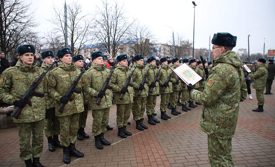 Торжественное мероприятие прошло у мемориала воинам-пограничникам.Служить Отечеству и с честью выполнять долг по защите Государственной границы – клятву на верность Родине сегодня отдали военнослужащие органов пограничной службы Гродненщины. Торжественное мероприятие прошло у мемориала воинам-пограничникам. Здесь собрались родные и близкие новобранцев, а также почетные гости, среди которых глава администрации Октябрьского района Гродно Олег Белинский, руководители и представители силовых ведомств области, ветераны пограничной службы.