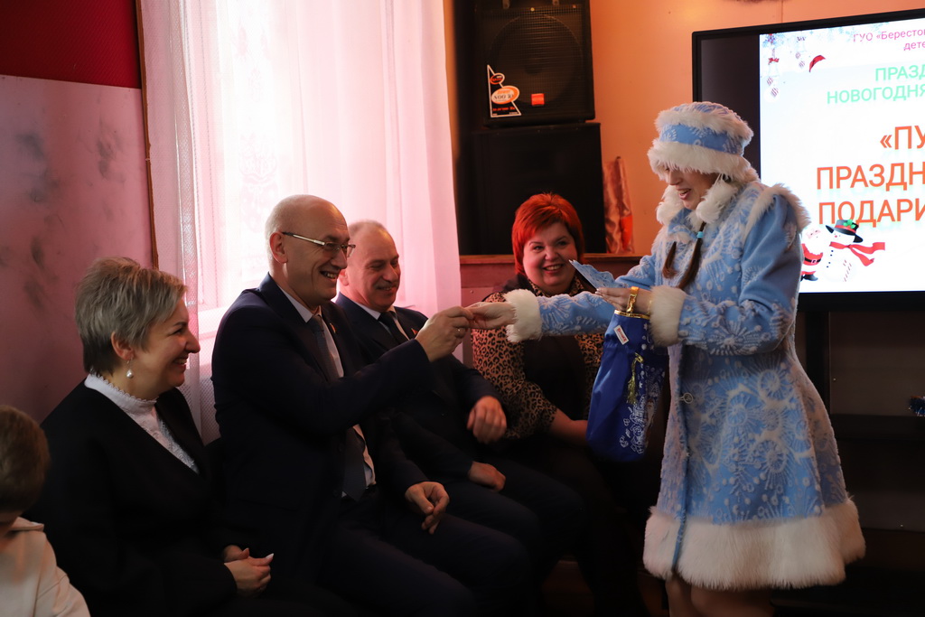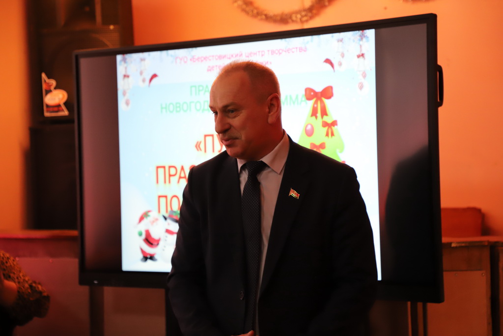 В рамках акции «Наши дети» поздравить ребят с наступающим Новым Годом, пожелать новых творческих успехов и исполнения всех желаний на праздник пришли почетные гости −председатель Берестовицкого районного Совета депутатов Павел Панкевич и депутат Палаты представителей Национального собрания Республики Беларусь Антон Кулисевич.