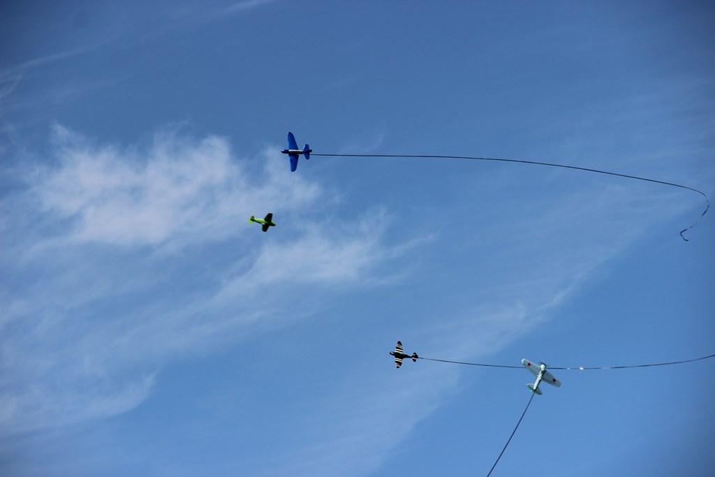 Соревнования этого типа воссоздают воздушные бои времен Второй мировой войны, используя модели-копии самолетов того периода. При ведении боя в небо поднимаются одновременно до 7 моделей самолетов, с прикрепленными лентами длиной 10-12 метров. Задача участников боя – срезать ленты соперников максимально большее количество раз.