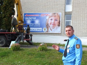 Яркий бигборд с такими словами появился вчера на боковой стене Берестовицкой средней школы со стороны улицы Ленина. Как сообщил старший госавтоинспектор ОГАИ Берестовицкого РОВД Виктор Котов, такие информационные плакаты размещены на самых видных местах во многих населенных пунктах области в рамках проведения Госавтоинспекцией с 26 августа по 6 сентября специального комплексного мероприятия с одноименным названием. Второй бигборд в районном центре, напоминающий водителям о необходимости двигаться в указанный период с включенным ближним светом фар, а также с пристегнутыми ремнями безопасности, работники РУП ЖКХ повесили на общежитии лицея.