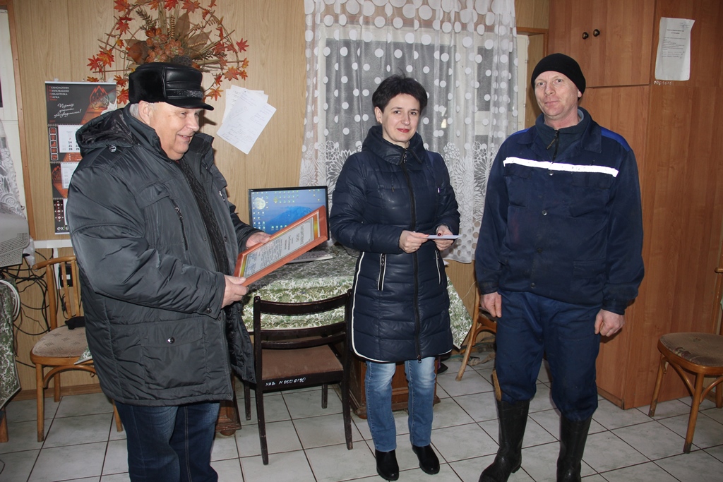 На первом животноводческом объекте, молочнотоварном комплексе «Матеевичи», поздравления от Владимира Александровича и председателя профкома КСУП «Воронецкий» Жанны Янушко принимали передовики производства, в числе которых оказались животновод Людмила Кострыкина, оператор машинного доения Тамара Матийчук и Ежи Анджиевский, слесарь по обслуживанию молочного оборудования МТК «Матеевичи». Чествование второй группы тружеников животноводства проходило на молочнотоварной ферме «Волотынь».