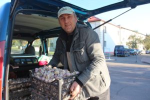 — На ярмарку привез чеснок, груши, картофель, немного яблок, все со своего огорода. На ярмарках я бываю уже не в первый раз, поэтому кто знает меня и уже брал мою продукцию, приходят ко мне. Чеснок у меня очень хороший, ядреный! Хорошо, что есть ярмарки, люди приходят сюда, общаются, что-то покупают. А у нас, продавцов, есть возможность продать излишки своего урожая.
