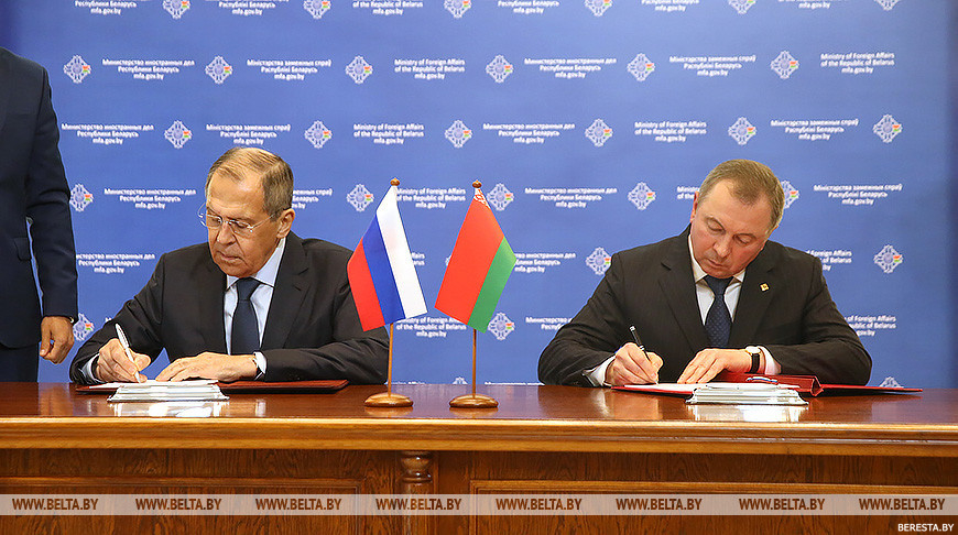 Подписи под документом после переговоров в Минске поставили министры иностранных дел Владимир Макей и Сергей Лавров.