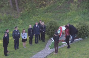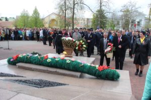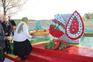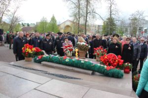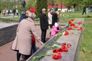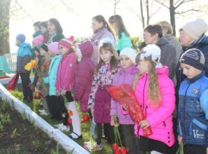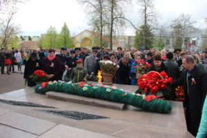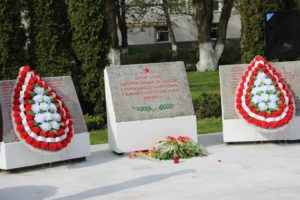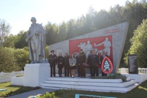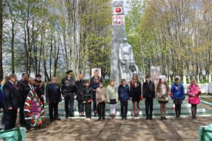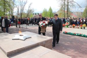 Минутой молчания почтили присутствующие память погибших в годы Великой Отечественной войны, прогремели залпы праздничного салюта. К памятнику и мемориальной плите были возложены гирлянда славы и живые цветы.