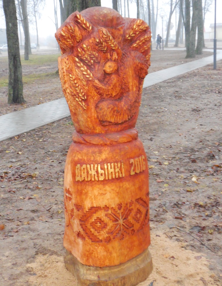 Как известно, к празднованию областных дожинок в Вороново реконструировали городской парк. Здесь появилась аллея деревянных скульптур, которые преподнесли поселку все районы Гродненщины. Каждый постарался передать в резных фигурах колорит своего края. Деревянную скульптуру с изображением берестовицкого символа Белки изготовил Александр Волчок.
