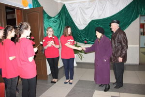 Члены волонтерского отряда «Доброе сердце» Большеберестовицкой средней школы встречали приглашенных на встречу активистов ветеранского движения, поздравляли их с праздником и вручали сделанные своими руками сувениры.