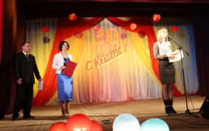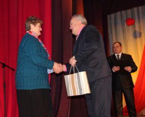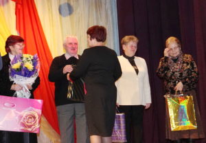 Поочередно на сцену приглашались председатели первичных ветеранских организаций различных сфер и отраслей народного хозяйства, для них звучали искренние слова признательности и благодарности, а представители трудовых коллективов, в которых они работали, вручали памятные подарки.