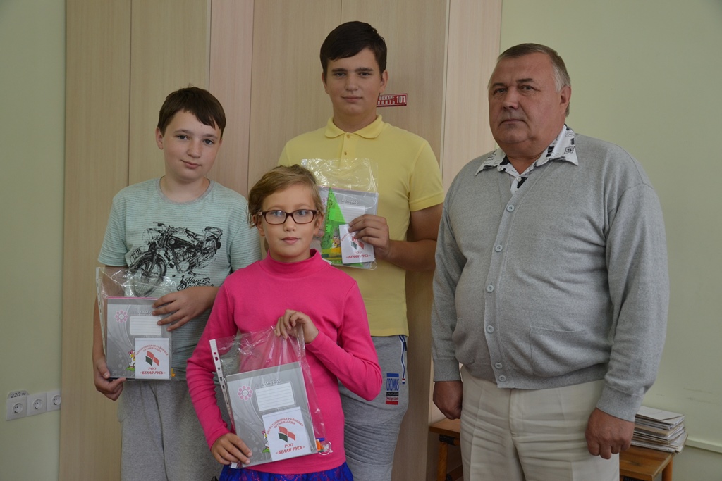 Накануне Дня знаний Николай Лозко, председатель районной организации, поздравил детей работников управления по труду, занятости и социальной защите с приближающимся началом учебного года. Николай Иванович вручил ребятам канцелярские принадлежности и пожелал успехов в достижении высоких результатов.