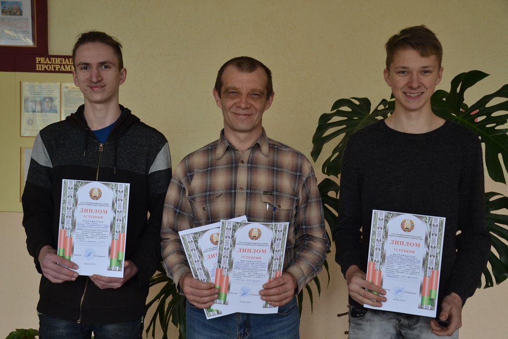 На прошлой неделе в Гродно прошел XVI областной слет изобретателей и рационализаторов, откуда наши участники вернулись с громкой победой, и не одной. Александр Внукович, старший мастер, Роберт Шока и Дмитрий Гомбальский, учащиеся 2 курса 241 группы завоевали четыре первых места в пяти возможных номинациях.