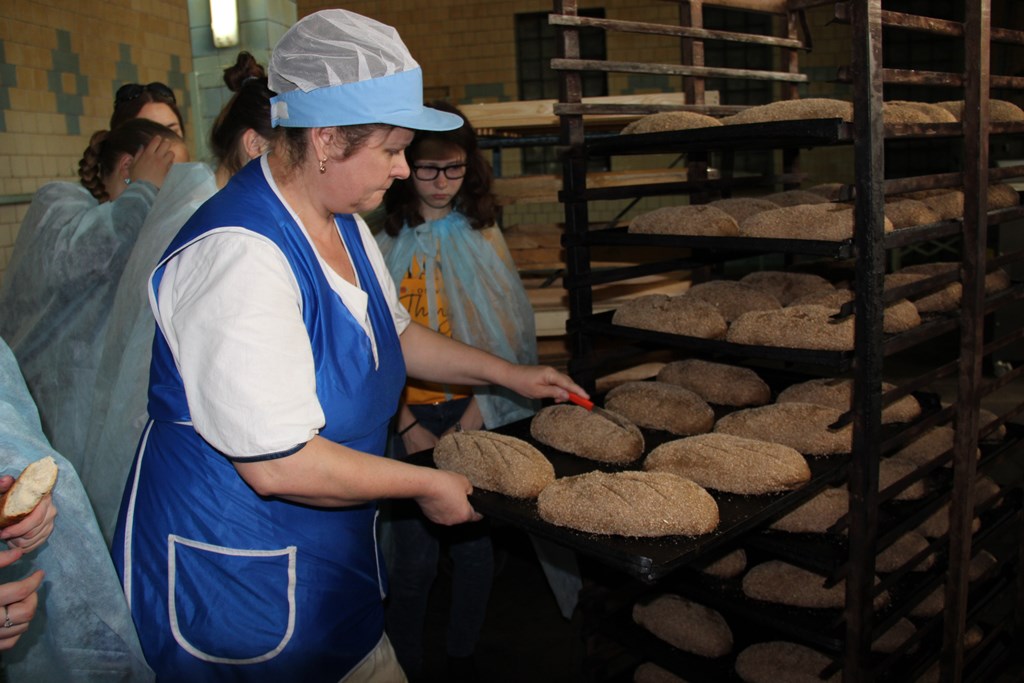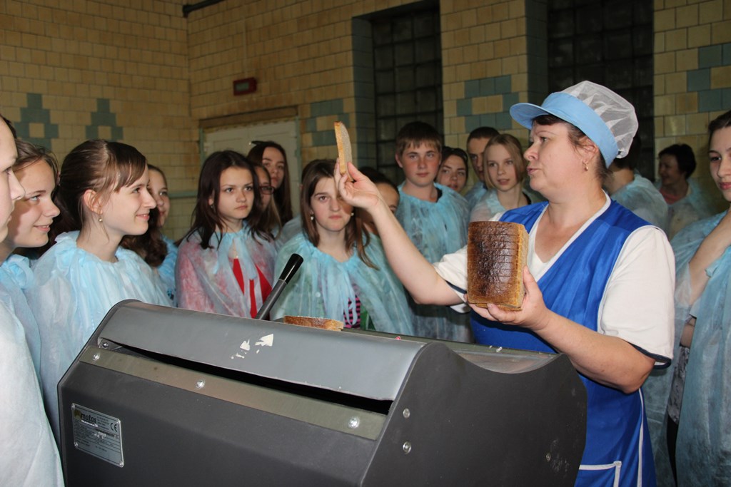 При посещении хлебопекарного цеха Берестовицкого филиала Гродненского областного потребительского общества ребята познакомились с процессом выпечки хлеба. Мастер Татьяна Нечепа показала весь процесс: от замеса теста до нарезки и упаковки готового продукта в целлофан. Школьники не только воочию наблюдали за этапами производства мучных изделий, но и побывали в роли дегустаторов свежеиспеченных батонов и булочек.