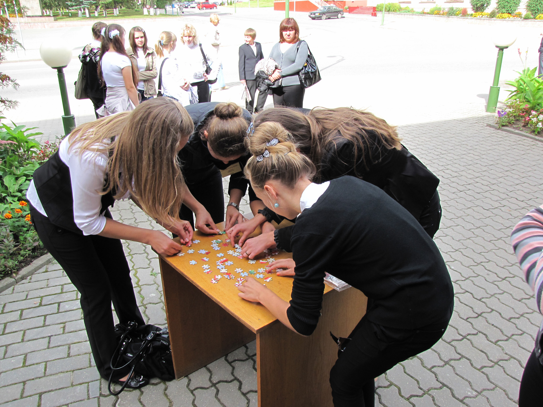 Задания ожидали участников игры самые разнообразные: расшифровать криптограмму, узнать слово по подсказке, угадать, что в «черном ящике», сложить пазлы, выбить максимальное количество очков в дартсе, пройти эстафету, пробраться через условное «болото». А еще были более серьезные станции, на которых требовалось ответить на исторические вопросы, указать, на каких улицах находятся и как называются архитектурные памятники Большой Берестовицы, показать знание законов об ответственности несовершеннолетних или решить шаблоны по правилам дорожного движения у самого начальника отделения ГАИ.
