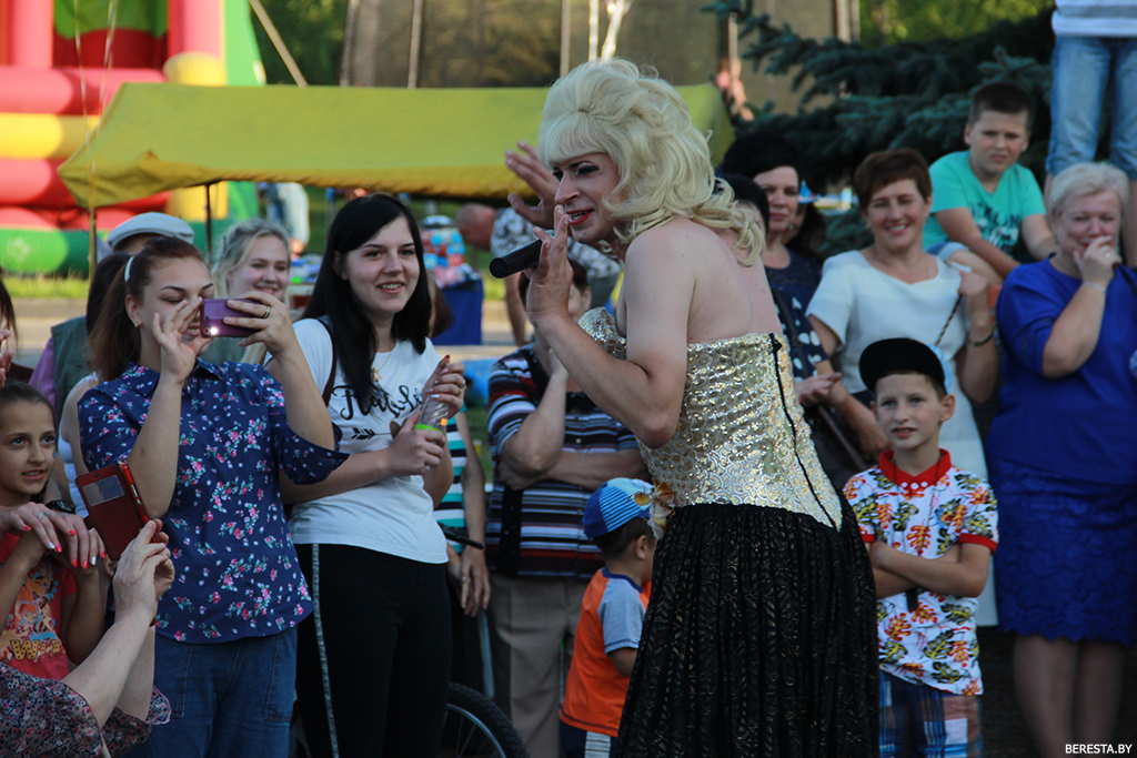 А вось неверагодна вясёлую абстаноўку на летняй пляцоўцы стварыў парадыст з Гродна Дзмітрый Буланаў, у асобе якога мясцовыя жыхары і госці свята маглі ўбачыць Мікалая Баскава, Алу Пугачову, Сафію Ратару і іншых вядомых зорак Расійскай эстрады. Далей усіх чакала не менш захапляльнае выступленне шоў-балета Аляксея Запруцкага з Мінска.