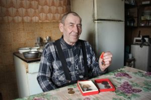 Сцяпанавіч дастае свае ўзнагароды, паказвае іх мне і трохі з крыўдай у голасе заўважае, што нават іх не хапіла, каб атрымаць званне заслужанага калгасніка.