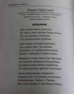 Верш Марыі Габрусевіч называецца “Абяцанне” і прысвечаны роднай бераставіцкай зямлі. Дзяўчынка абяцае славіць родную Бераставіччыну і быць годнай яе дачкой.