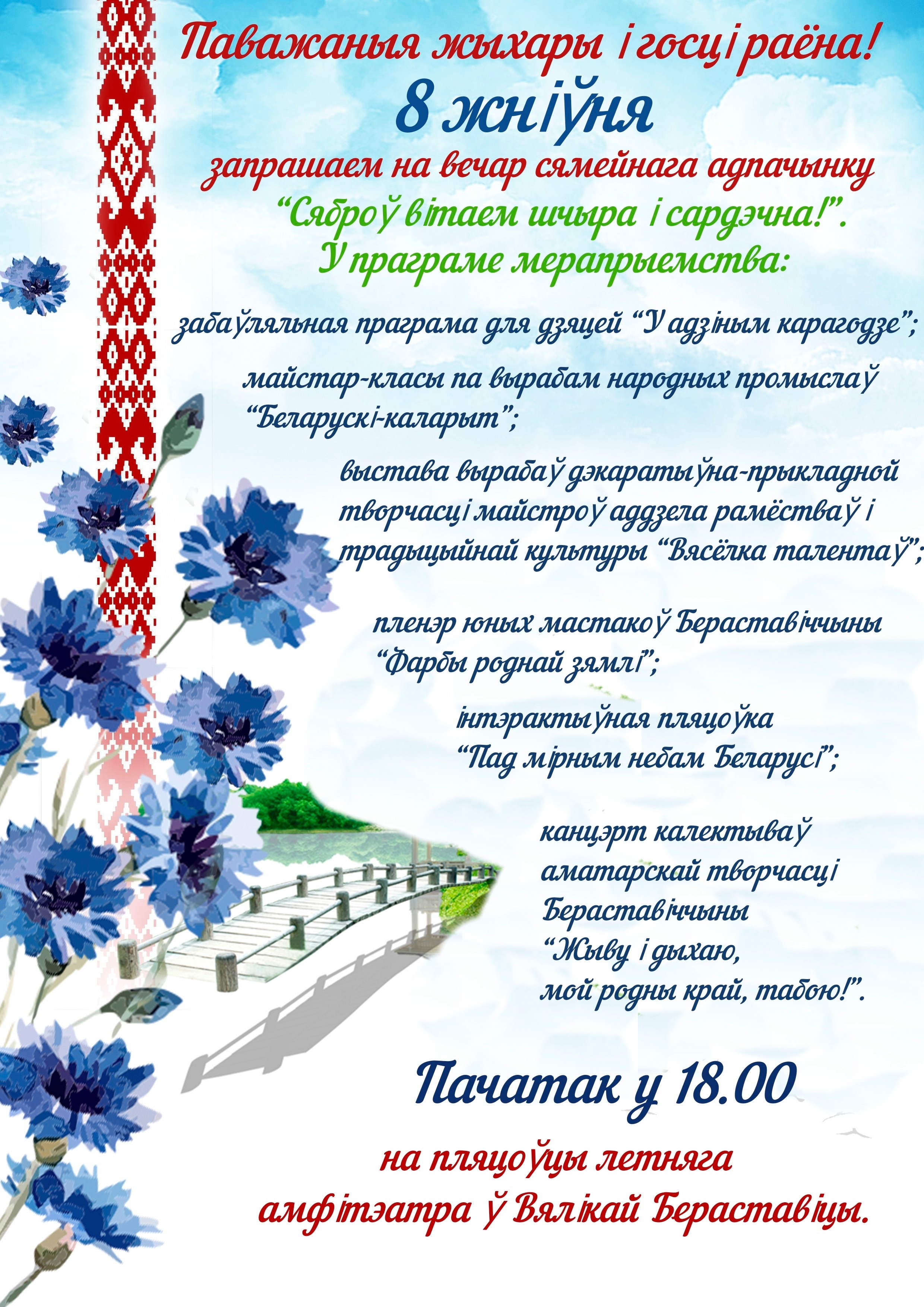 Вечар сямейнага адпачынку пройдзе ў Вялікай Бераставіцы 8 жніўня