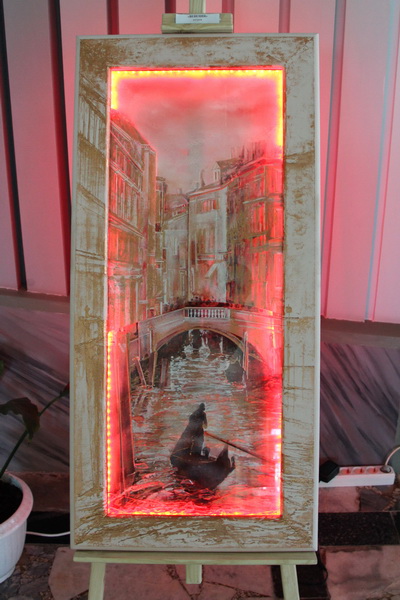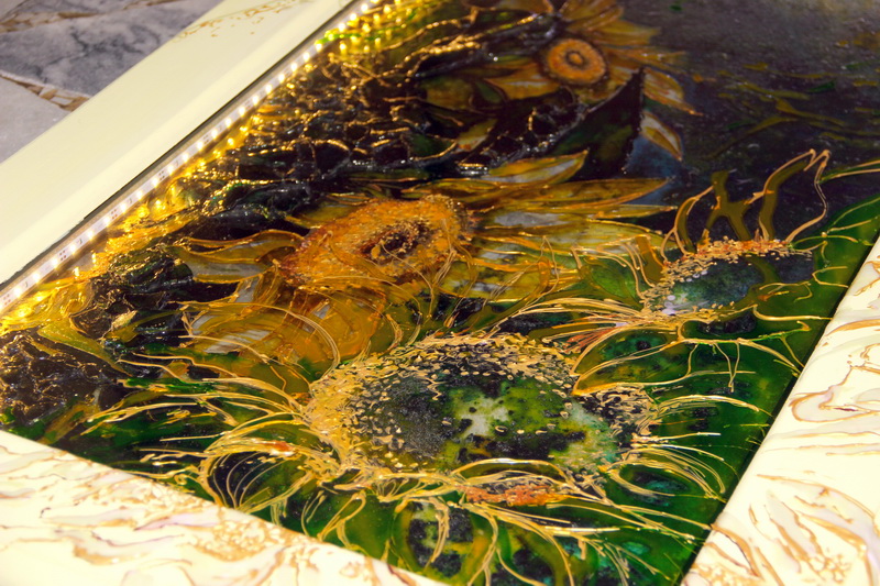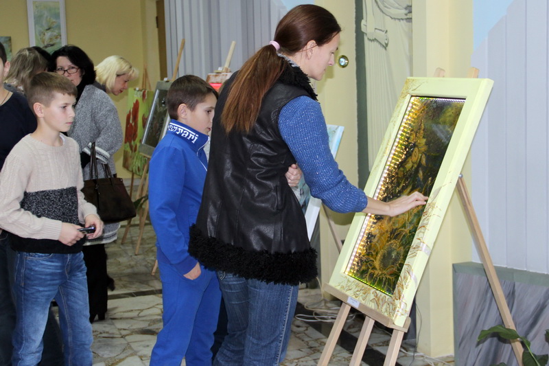 І сапраўды. Напэўна, кожны, хто хоць раз убачыў вітражны роспіс аўтара, пажадаў бы ўпрыгожыць сцены сваёй кватэры ці офіса такім творам. Тым больш, што самыя любімыя творы мастачкі “Венецыя” і “Сланечнікі” аформлены ў раму з каляровым падсвятленнем і пры выключаным святле глядзяцца асабліва прыгожа. Гэта таксама было прадэманстравана наведвальнікам выставы.