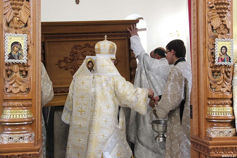 С особым трепетом все ожидают Владыку Артемия, архиепископа Гродненского и Волковысского. И вот он здесь. У входа в храм Владыку встречают с хлебом-солью, цветами и  приветственными стихами, которые прочитали юные воспитанники воскресной школы. Визит Высокопреосвященнейшего Артемия – большая честь для верующих.