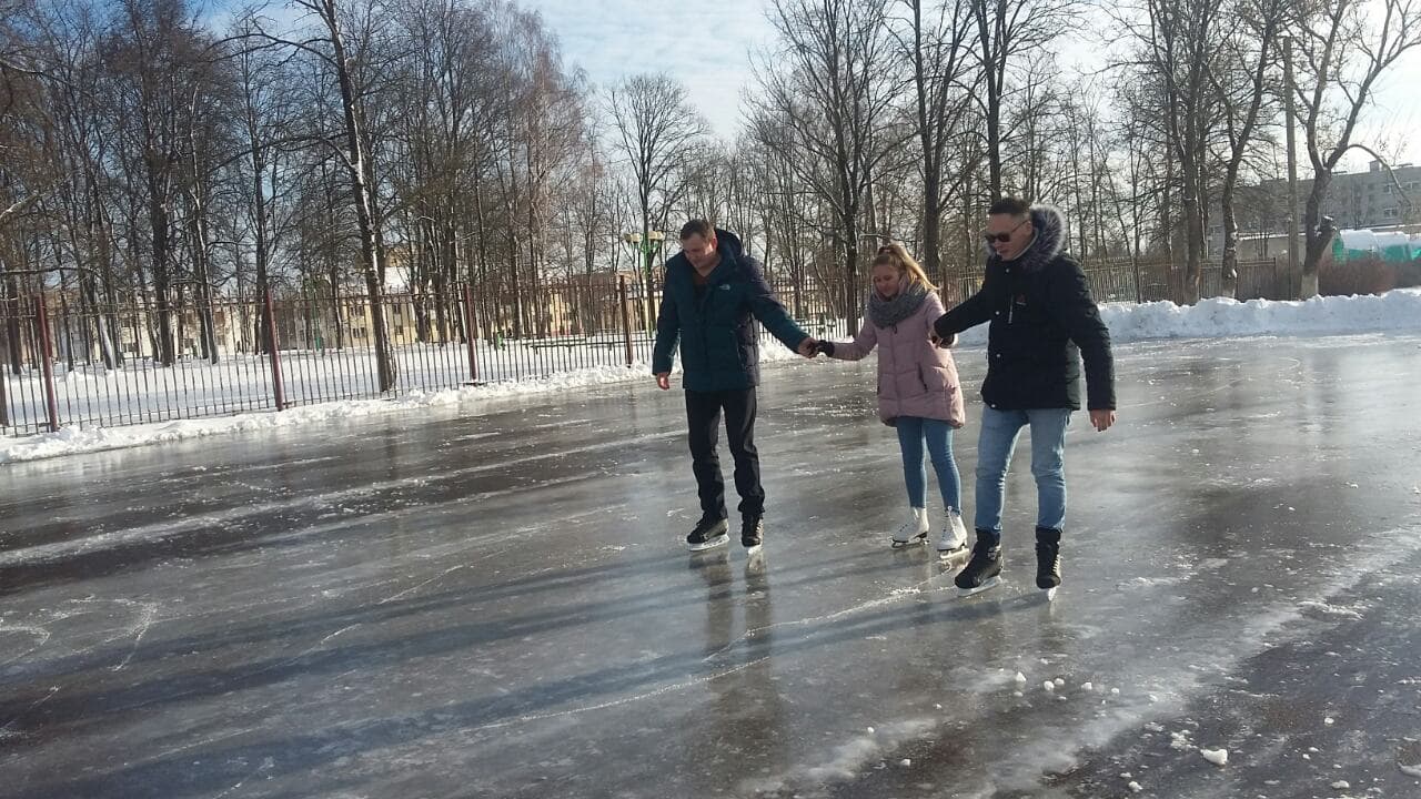 Одним из первых опробовал и открыл вновь залитый каток и.о. директора ФОСЦ Павел Масловский, который пришел на каток вместе с друзьями.