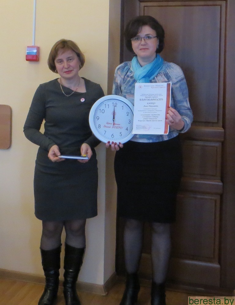 Заместитель директора по идеологической работе КСУП «Макаровцы» Алеся Капица от Гродненской Областной организации Белоруского Красного Креста была награждена Благодарностью и ценным подарком за плодотворное сотрудничество и всестороннюю поддержку уставной деятельности.