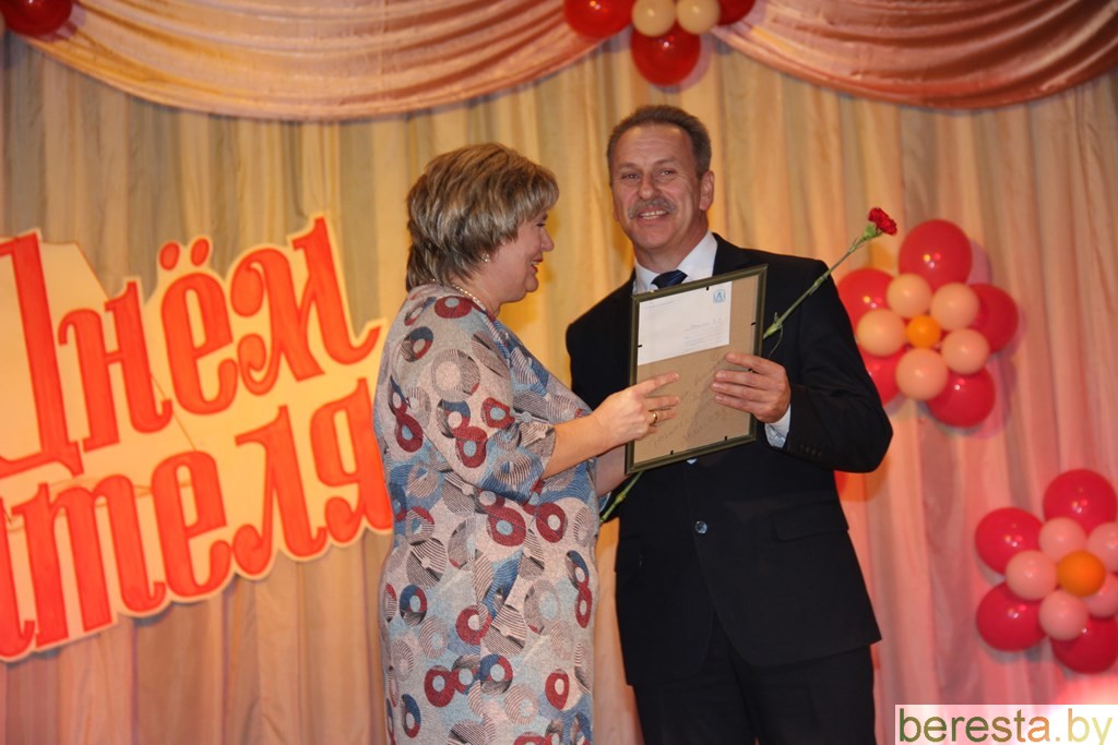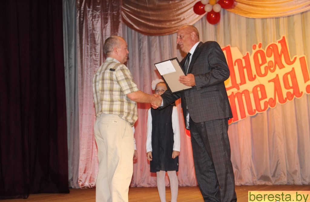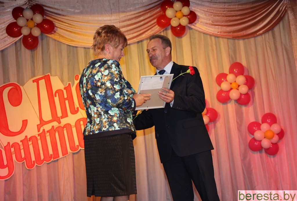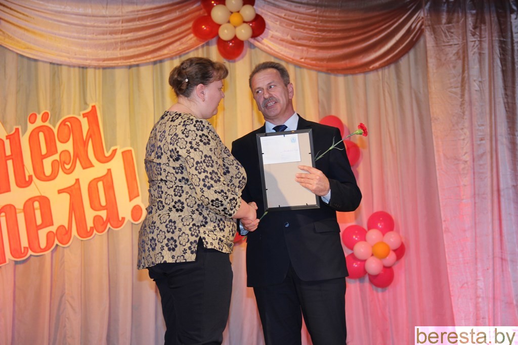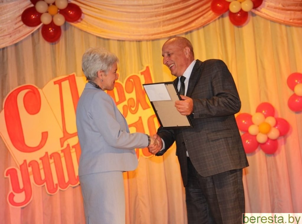 Со словами поздравлений и наилучших пожеланий к педагогическим работникам района обратился и начальник отдела образования, спорта и туризма райисполкома Павел Панкевич. Павел Николаевич вручил Грамоты управления образования облисполкома Валентине Болдак, заведующему Большеберестовицким яслями-садом и Елене Хилюта, учителю химии и биологии Пархимовского яслей-сада-БШ, Почетные грамоты и Грамоты отдела образования, спорта и туризма райисполкома получили Вадим Антоненко, педагог дополнительного образования Большеберестовицкой СШ, Анна Болдак, учитель начальных классов Большеэйсмонтовской СШ, Оксана Дручинина, педагог дополнительного образования Берестовицкого ЦТДМ, Михаил Зенько, учитель физической культуры и здоровья Стародворецкого яслей-сада — БШ, Веслава Игнатюк, воспитатель дошкольного образования Большеберестовицкого яслей-сада, Людмила Коник, учитель начальных классов СШ аг. Пограничный, Мария Курстак, учитель начальных классов Макаровского яслей-сада — СШ, Евгения Лозовицкая, помощник воспитателя детского социального приюта Берестовицкого районного социально-педагогического центра, Тамара Марчик, учитель начальных классов Кваторского яслей-сада – БШ, Татьяна Матвейчик, учитель начальных классов Олекшицкой СШ, Артур Мяделко, учитель трудового обучения Малоберестовицкой СШ, Жанна Романчук, учитель физической культуры и здоровья Большеберестовицкой СШ, Татьяна Севко, учитель начальных классов Пархимовского яслей – сада — БШ, Мария Шор, воспитатель дошкольного образования Большеберестовицкого яслей-сада, Алена Лаптюхова, учитель иностранного языка Стародворецкого яслей-сада — БШ, Эдуард Мазовецкий, учитель белорусского языка и литературы Макаровского яслей-сада – СШ и Анна Плявго, учитель физической культуры и здоровья Малоберестовицкой СШ.