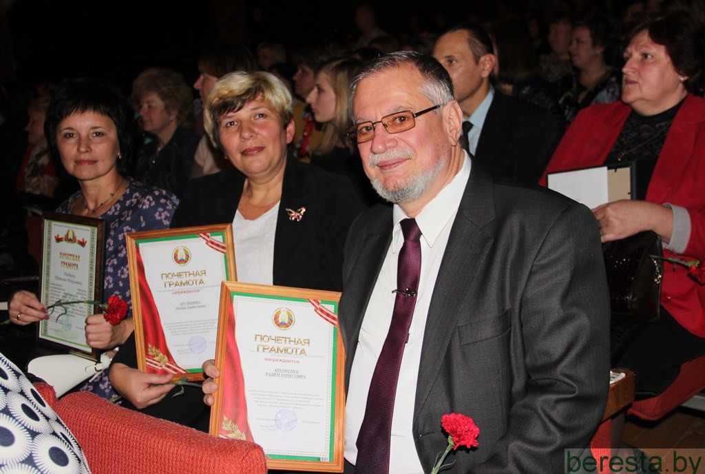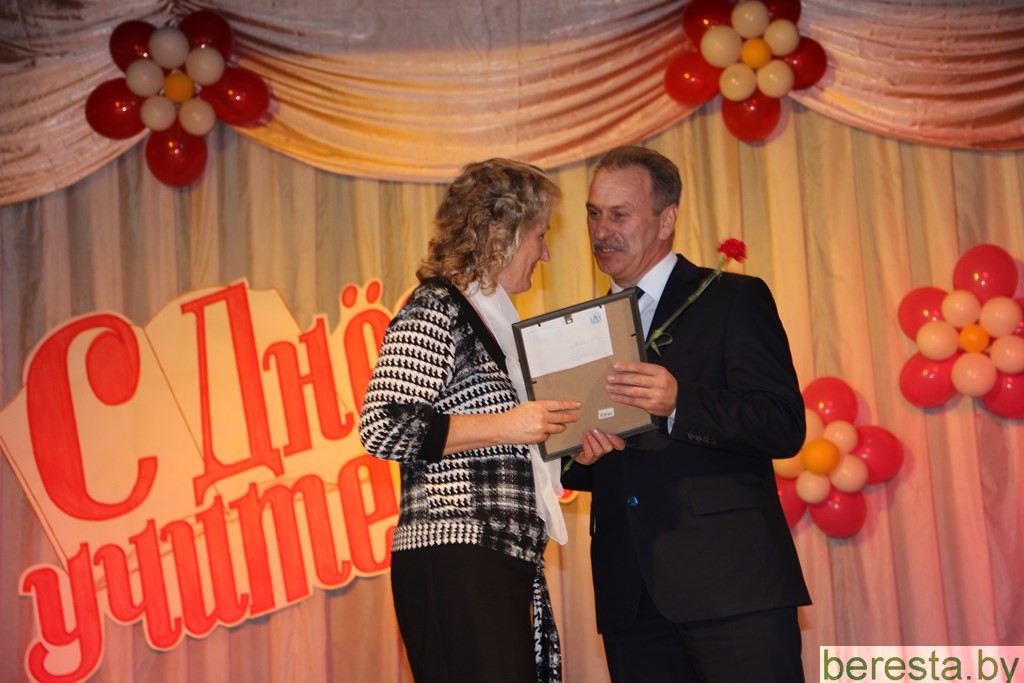 Обращаясь к педагогам, Сергей Егорович поздравил их с поистине всенародным праздником, которым по сути является День учителя, поблагодарил их за добросовестный труд, инициативу и достигнутые успехи в обучении и воспитании подрастающего поколения и вручил награды районного исполнительного комитета. Почетные грамоты райисполкома получили Татьяна Василенко, учитель трудового обучения Большеберестовицкой СШ, Александр Комяк, учитель трудового обучения Олекшицкой СШ, Зоя Онищенко, учитель биологии Большеберестовицкой СШ, Татьяна Таберко, заместитель директора Берестовицкого центра творчества детей и молодежи. Грамотами райисполкома были награждены Лариса Авдей, учитель русского языка и литературы Макаровского яслей-сада – СШ, Жанна Козел, учитель белорусского языка и литературы Малоберестовицкой СШ, Гражина Некало, заместитель директора по учебной работе СШ аг. Пограничный, Галина Румак, учитель белорусского языка и литературы Олекшицкой СШ, Виктор Фридель, учитель информатики Большеберестовицкой СШ, Благодарственное письмо райисполкома получила также Галина Поплавская, учитель белорусского языка и литературы Олекшицкой СШ.