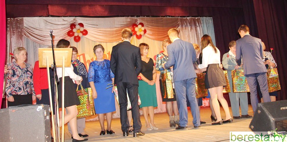 Особая благодарность на праздничном уроке была высказана педагогам, которые более 40 лет своей жизни посвятили педагогической деятельности и сегодня продолжают работать в учреждениях образования района. На сцену торжественно пригласили Галину Боровскую, учителя начальных классов Макаровского яслей-сада-СШ, Марину Дегтяреву, педагога дополнительного образования Большеберестовицкой СШ, Тамару Жук, учителя начальных классов Большеберестовицкой СШ, Марию Курстак, учителя начальных классов Макаровского яслей-сада-СШ, Евгению Лозовицкую, помощника воспитателя детского социального приюта Берестовицкого районного СПЦ, Нину Людко, учителя русского языка и литературы Стародворецкого яслей-сада – БШ, Тамару Марчик, учителя начальных классов Кваторского яслей-сада-БШ, Галину Микульскую, учителя математики Макаровского яслей-сада-СШ, Марию Осипцову, учителя русского языка и литературы Большеэйсмонтовской СШ, Ирину Швек, учителя белорусского языка и литературы Большеэйсмонтовской СШ, Тамару Эйсмонт, учителя истории Малоберестовицкой СШ. Под аплодисменты зала им были вручены цветы и памятные подарки.
