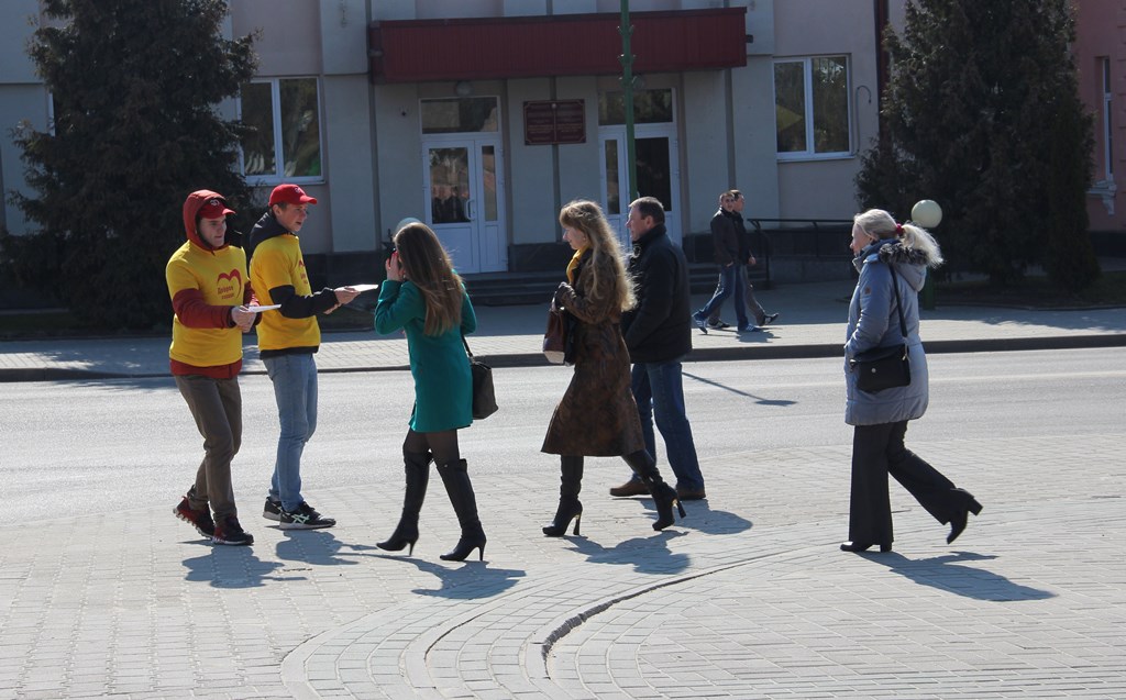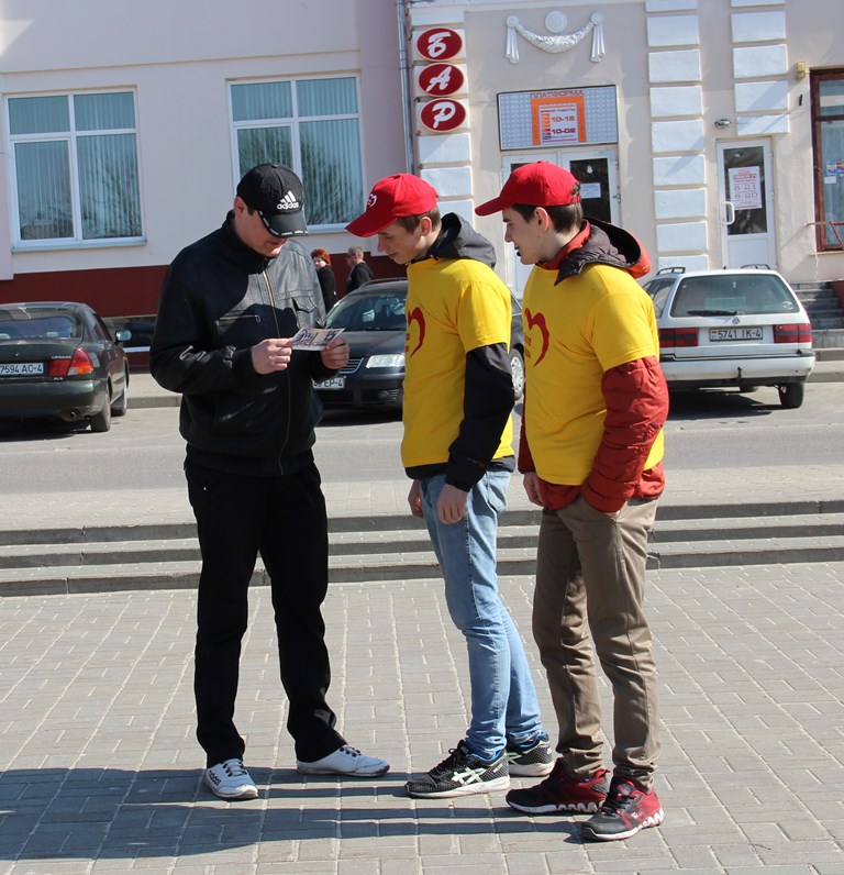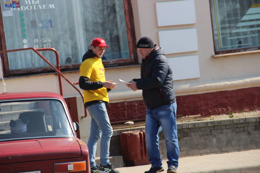 Во время проведения акции на площади городского поселка Большая Берестовица члены волонтерского отряда Берестовицкого государственного сельскохозяйственного профессионального лицея раздавали прохожим листовки с описанием молодежной инициативы и призывали всех присоединиться к ней.