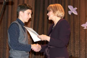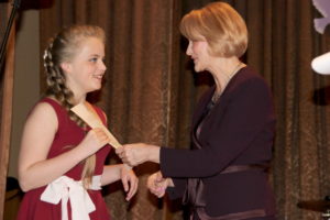 С приветственным словом к выпускникам, их родителям и преподавателям обратилась директор детской школы искусств Ирина Баер. Пожелав выпускникам доброго пути, поблагодарив учителей за самоотверженный труд, а родителей – за взаимопонимание и поддержку, Ирина Александровна по многолетней традиции вручила ряду учащихся похвальные листы за отличную учебу, грамоты за активное участие в концертной и выставочной деятельности, а также аттестаты ребятам, завершившим свое обучение в школе.