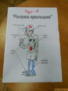 Позже эти знания нужно было закрепить на практике: активисты первичной организации ОО «БРСМ» лицея посетили каждую группу учащихся с заданием — «Раскрась курильщика».  Лицеистам нужно было наглядно изобразить негативные последствия курения для организма человека. Ребята активно принялись за работу: они отметили черные легкие, прыщи, болезненный цвет лица, коричневые зубы, жёлтые ногти и синюшные конечности.