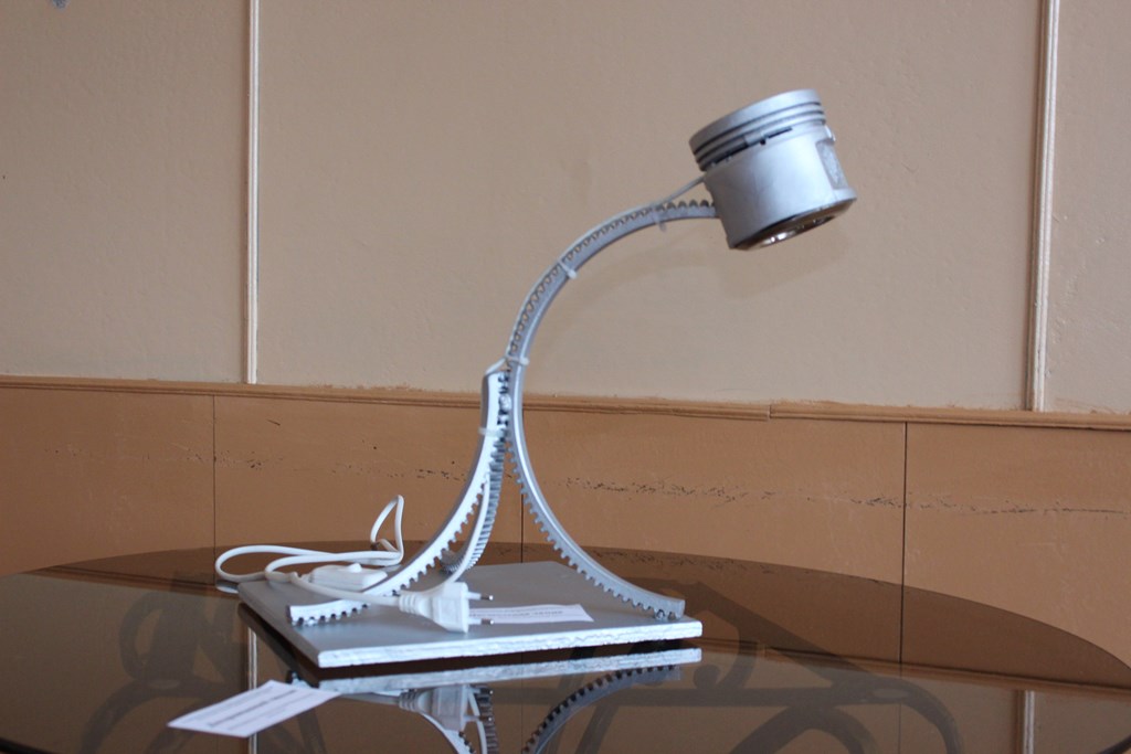 Идея создать собственноручно осветительный прибор из таких деталей у Александра закрадывалась еще в студенческие годы, но реализовать ее то времени не было, то возможности, а, может, где-то и опыта недоставало. Говорит, решился, когда узнал о проведении в лицее конкурса. В итоге кропотливой работы «родился» необычный элемент интерьера – настольная лампа.