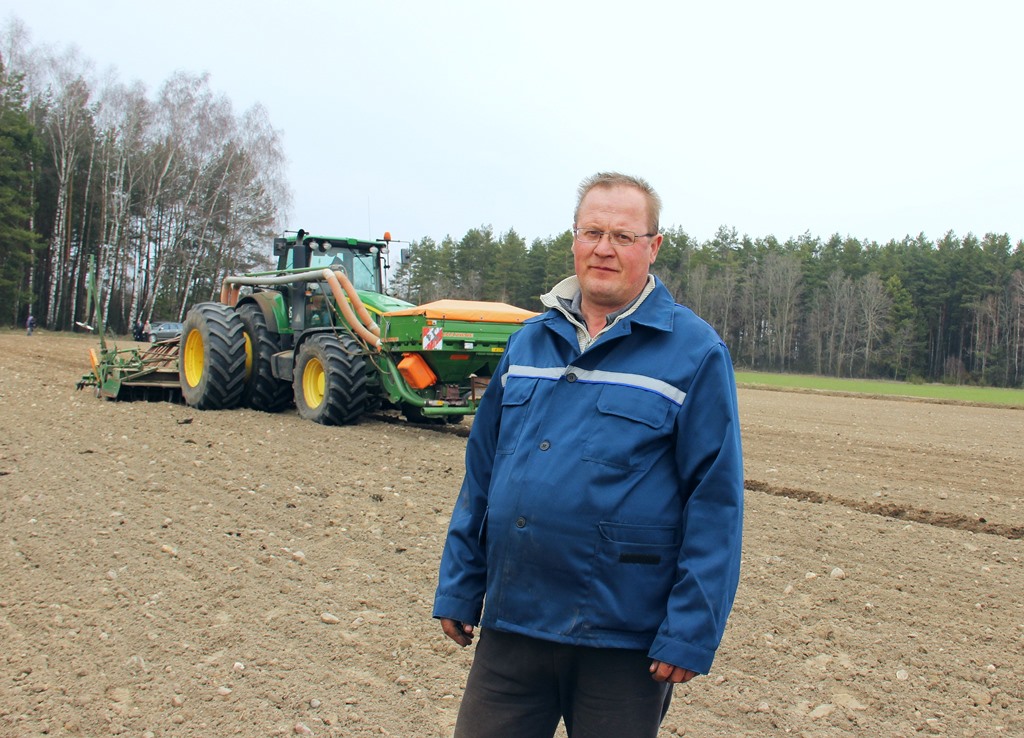29 марта на третьем производственном участке «Поплавцы» начали сеять овес. Эту ответственную операцию доверили опытному механизатору Юрию Гурскому. Уже третий сезон он выводит в поле свой мощный трактор «Джон Дир» с посевным агрегатом. За день он успевает провести сев на 30-40 гектарах.