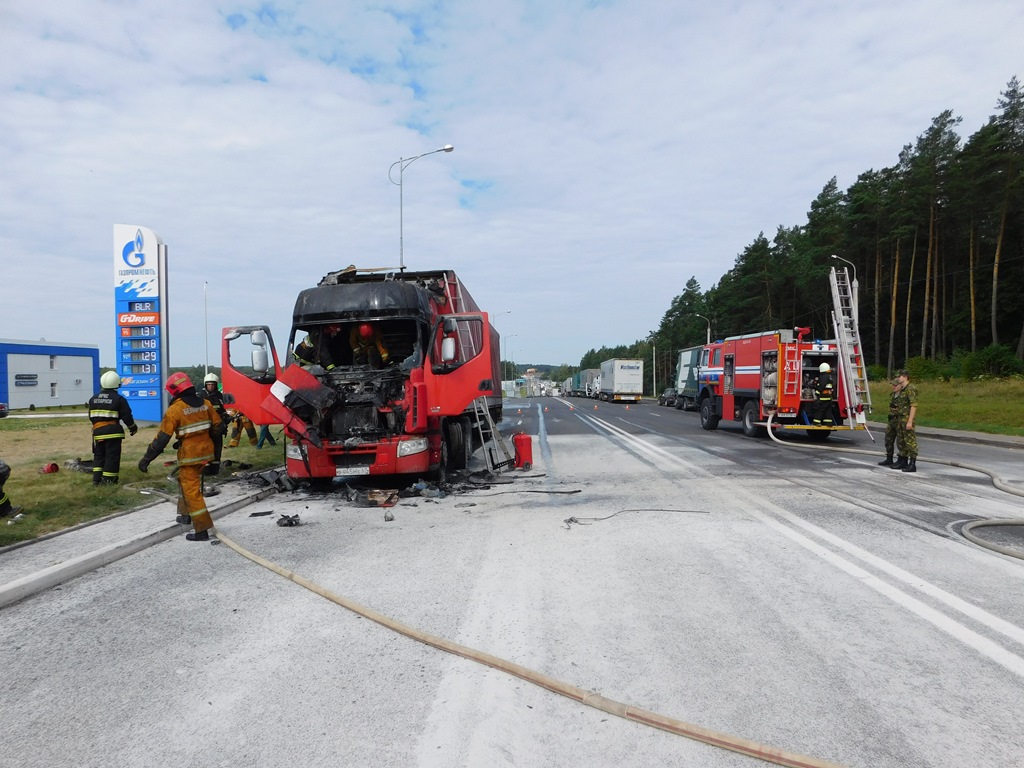 Во вторник, 10 июля, диспетчеру районного отдела по чрезвычайным ситуациям поступило сообщение о том, что вблизи автозаправочной станции в деревне Минчики горит большегруз, огнем охвачена кабина автомобиля.