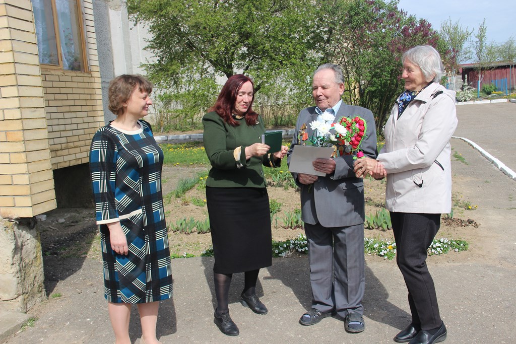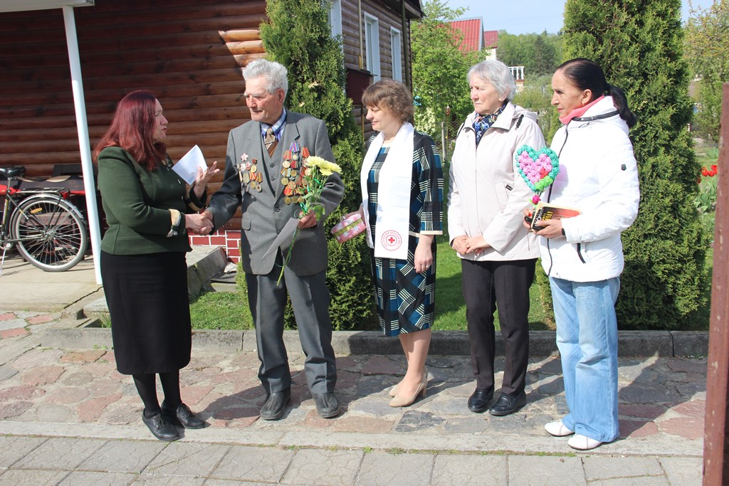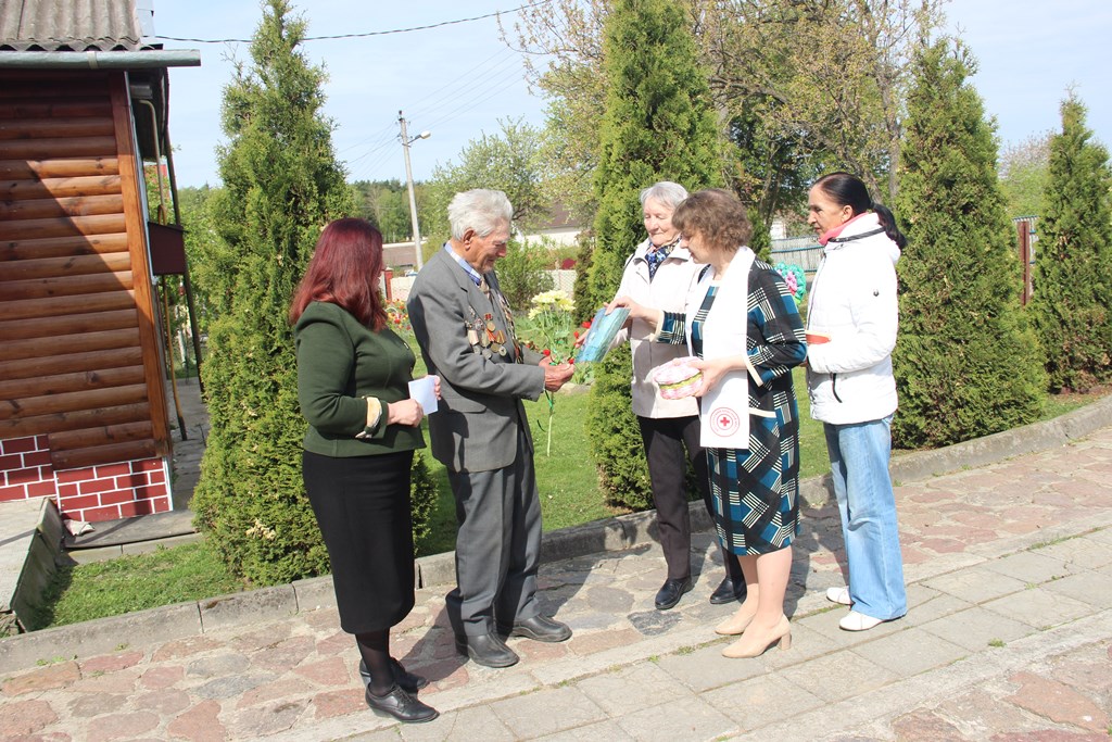 Накануне праздника Великой Победы ветеранов Великой Отечественной войны из нашего района поздравили представители отделения дневного пребывания для граждан пожилого возраста, отделения дневного пребывания для инвалидов Территориального центра социального обслуживания населения, районной организации Белорусского Общества Красного совместно с председателем районного совета ветеранов Еленой Силковой.