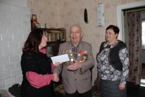 освобождал родную землю от немецко-фашистских захватчиков. На сегодняшний день в нашем районе проживает 10 фронтовиков, 1 участник партизанского движения и 4 работника тыла. Всех их мы посетили накануне Дня защитников Отечества, поблагодарили за самоотверженность и верность Родине, вручили денежное вознаграждение от районного исполнительного комитета.