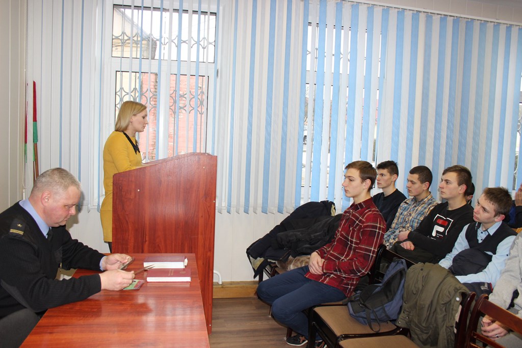 Новых бойцов поздравил старший инспектор по охране общественного порядка отдела охраны правопорядка и профилактики Сергей Букас. Он пожелал ребятам побольше храбрости и крепкого здоровья, а также рассказал о службе в милиции, представил всем собравшимся видеофильм об учебе в Могилевском институте МВД, который вызвал у всех ребят большой интерес. В подтверждение этому – многочисленные вопросы парней о работе в милиции и о поступлении в учебные заведения МВД, на которые сотрудник милиции давал ребятам подробные ответы. Ведь кто знает, возможно, это его будущие коллеги.