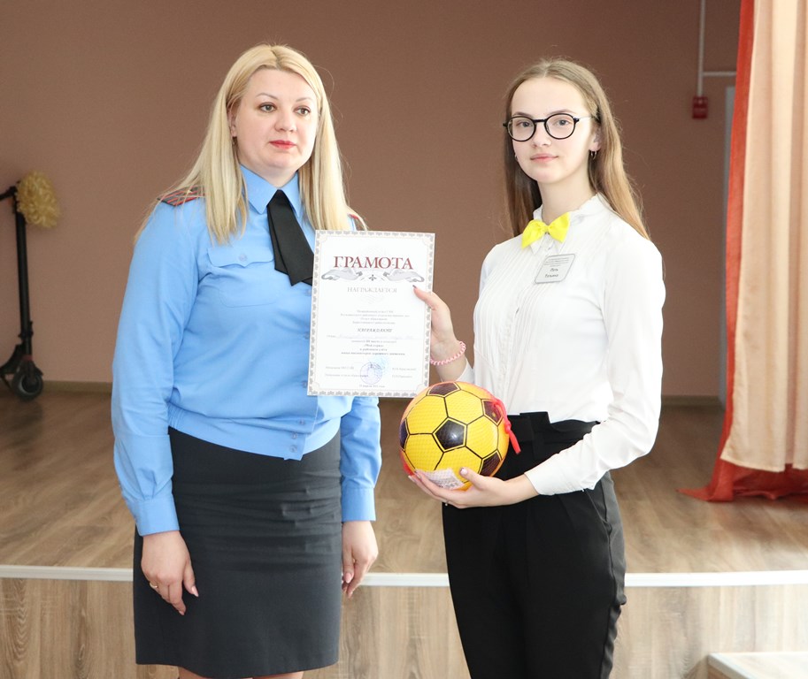 Елена Анатольевна вручила грамоты и памятные подарки победителям и призерам всех конкурсных испытаний, которые проводились как в личном, так и в командном первенстве. К слову, памятные подарки для участников слета приобрел КСУП «Пархимовцы», и они очень порадовали юных инспекторов дорожного движения.