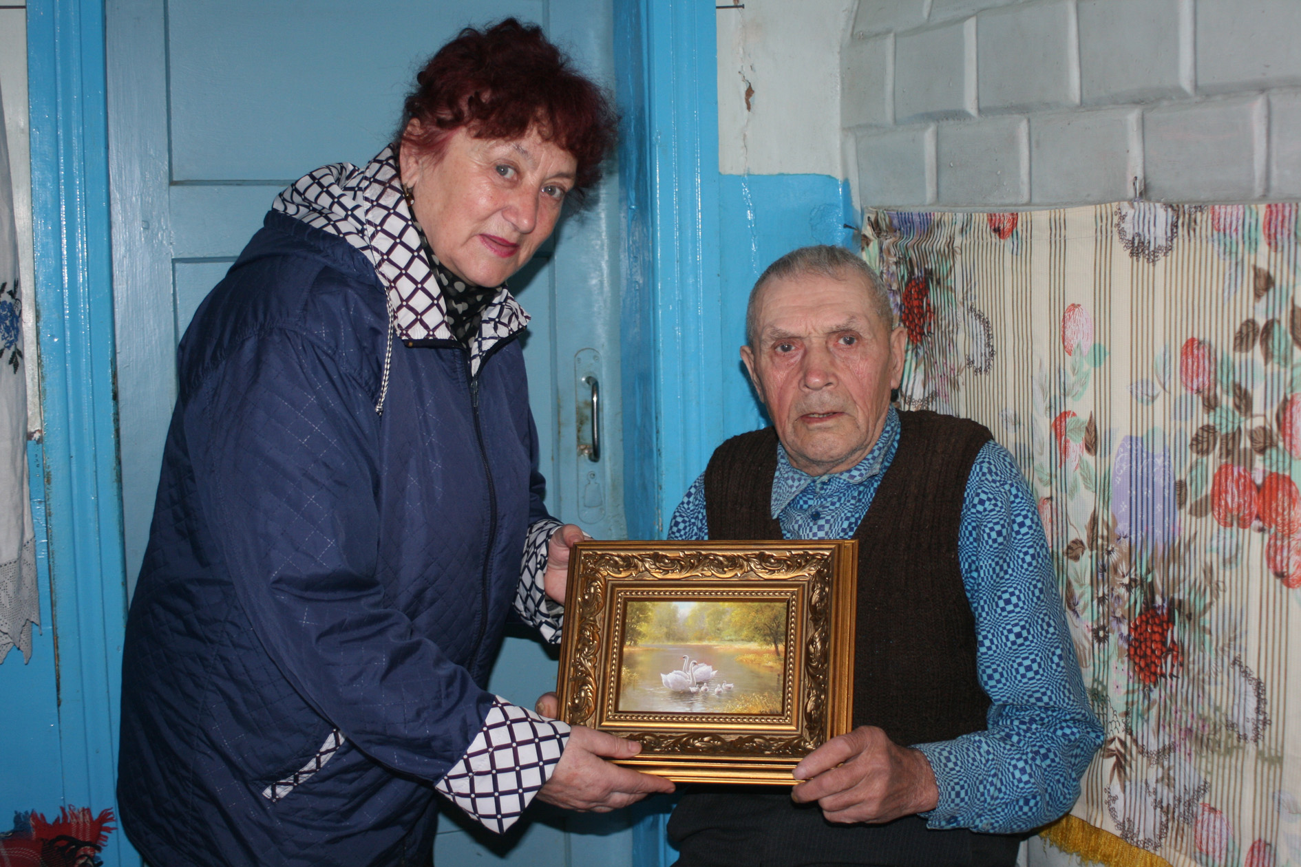 В мирное послевоенное время земляки знали Калиту как бессменного строителя: все годы жизни он посвятил работе на местной пилораме. А в свободное время Владимир Петрович очень любил рисовать. В доме висели картины, написанные им самим. И узнав об этом увлечении ветерана, председатель районного совета ветеранов Елена Силкова и ответственный секретарь этой организации Софья Коник, выбирая ему подарок на юбилей, остановились именно на картине. В пятницу они приехали к Владимиру Петровичу домой и сердечно поздравили ветерана с такой славной датой в его жизни, пожелали крепкого здоровья и бодрости.