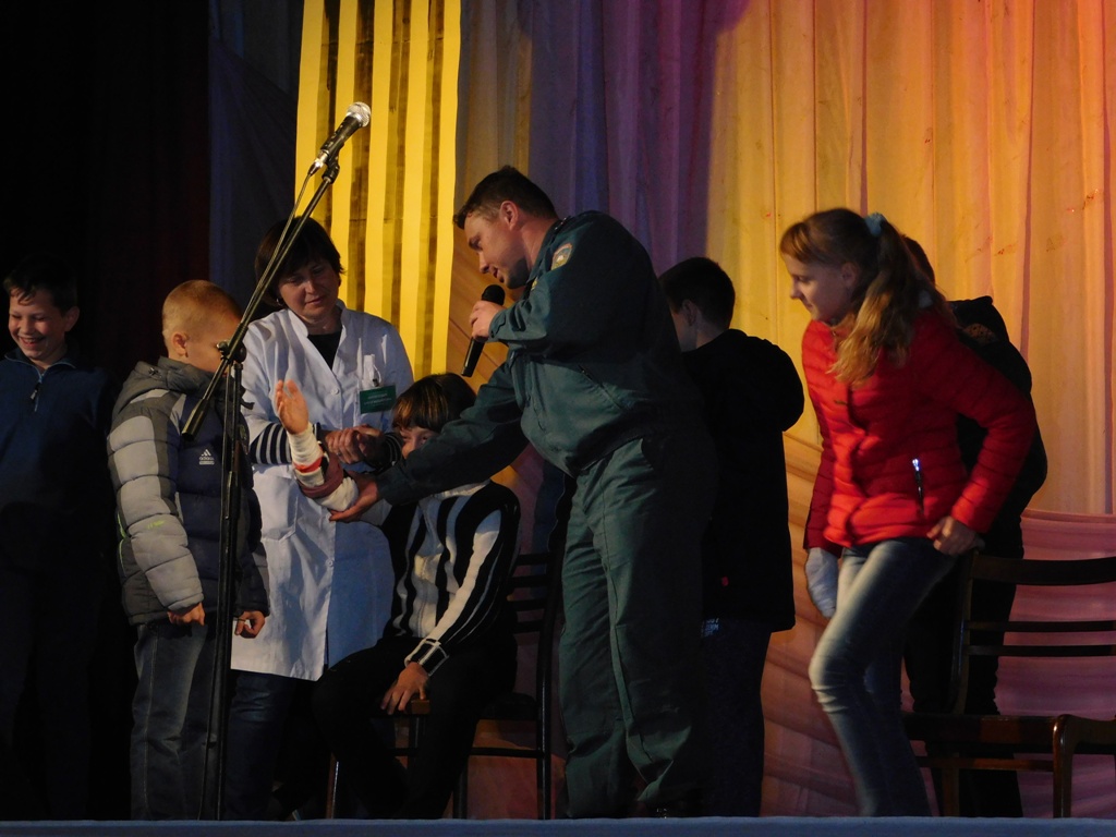 Затем все присутствующие направились в актовый зал учреждения культуры, где для ребят активисты БМООСП Большеберестовицкой средней школы имени С.О.Притыцкого устроили настоящее представление. Ведущие мероприятия рассказали о своей молодежной организации, говорили об основах безопасности жизнедеятельности. Также был продемонстрирован видеоролик о деятельности организации, а команда БМООСП «Без ЧС» выступила с агитбригадой. К ним подключились работники МЧС и председатель районной организации «Красного креста», которые провели викторину по ОБЖ и оказанию первой доврачебной помои. dscn9940 dscn9961 dscn9971Не остались в стороне и работники культуры. На мероприятии звучали музыкальные номера в исполнении учащихся кружка сольного пения «Арт-плюс» Микуть Екатерины, Лукашевич Арины, Хосановой Полины, а в исполнении инспектора группы пропаганды и взаимодействия с общественностью райотдела по чрезвычайным ситуациям прозвучала песня о героике профессии спасателя-пожарного.