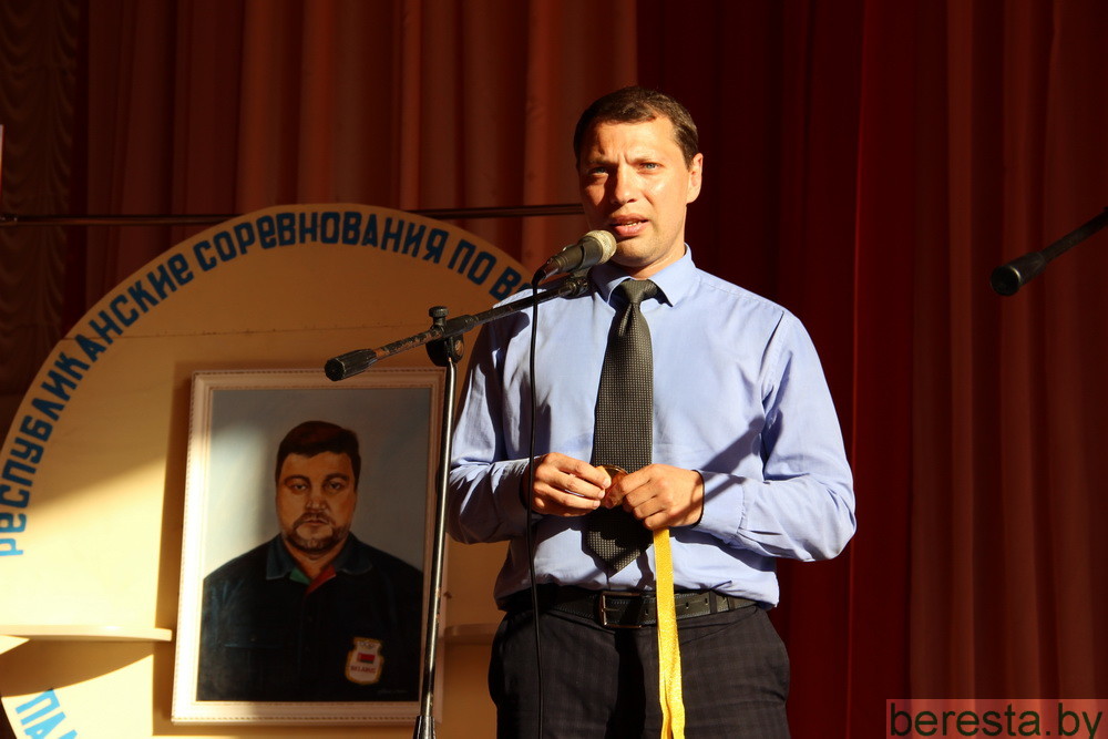 борьбе, посвященном замечательному человеку, великолепному тренеру Владимиру Ивановичу Валейчику, который посвятил свою жизнь великому делу – подготовке спортсменов высокого класса и развитию вольной борьбы. Мы собрались здесь, чтобы вспомнить о Владимире Ивановиче, а также о безвременно ушедших тренерах Берестовитчины Геннадии Антушевиче, Владимире Семенчене, Сергее Валейчике. Невозможно переоценить значимость нашего сегодняшнего мероприятия. Этот спортивный праздник имеет особое значение для всех собравшихся, и стимулирует нас еще эффективнее работать на благо общего дела. На протяжении двух дней мы с интересом наблюдали за выступлениями наших юных борцов, которые в недалеком будущем будут защищать честь нашей страны и на международных соревнованиях. Ведь не секрет, что берестовицкая борьба и борьба наших соседей, свислочан , имеют свои славные традиции подготовки спортсменов-международников. На недавно завершившемся Чемпионате Европы в городе Каспийск в Дагестане воспитанник районной СДЮШОР профсоюзов Андрей Карпач стал бронзовым призером. Воспитанник свислочской борьбы Александр Гуштын завоевал серебряную медаль на Чемпионате Европы 2017 года. Это настоящие мужчины. Я не могу по-другому сказать, это мужики, которые доказали, что и в маленьких поселках можно готовить спортсменов высокого класса, чемпионов и призеров мировых и европейских первенств. Хочется поблагодарить тех, кто приехал на наш турнир, нашел возможность и средства поучаствовать в состязаниях. Особое почтение тем, кто внес свой значительный вклад в подготовку и проведение нашего спортивного форума. Я желаю всем прекрасного настроения, ребятам – побед на борцовском ковре, тренерам – удовлетворения от успешных результатов воспитанников и терпения в их нелегком, но благородном труде.