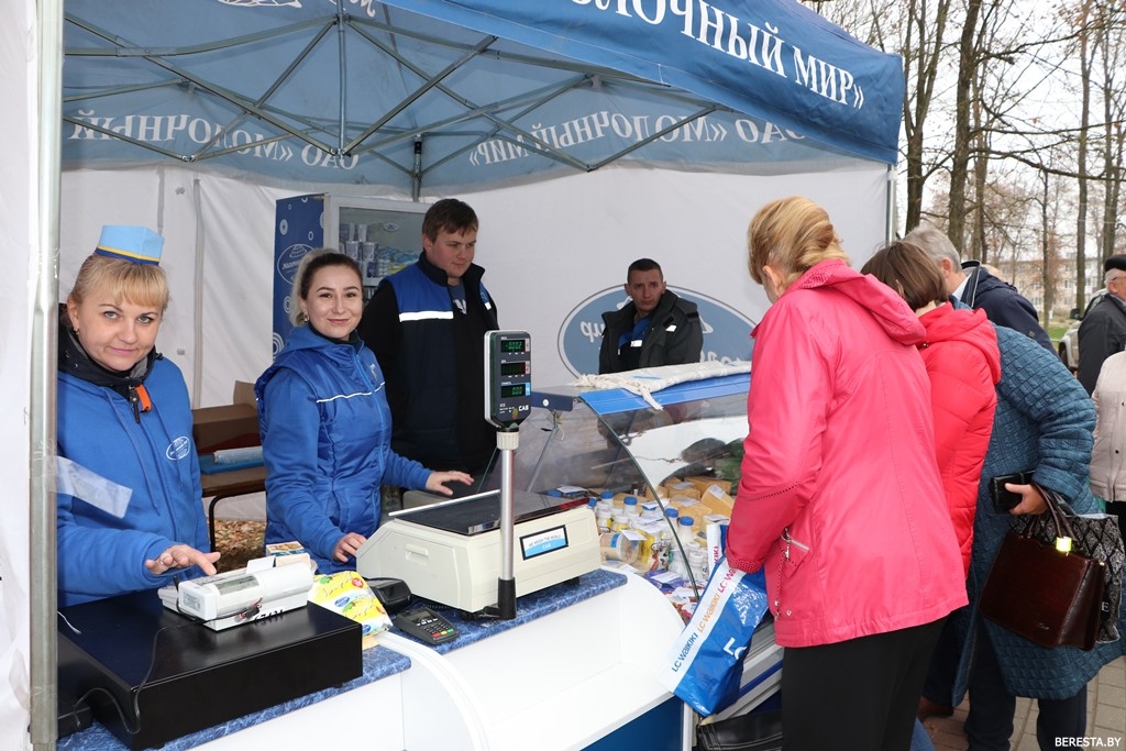 Следующая торговая зона была в прилегающем парке. Здесь свою продукцию предлагали ОАО «Молочный Мир», Берестовицкая птицефабрика, СПП «АгроМир».