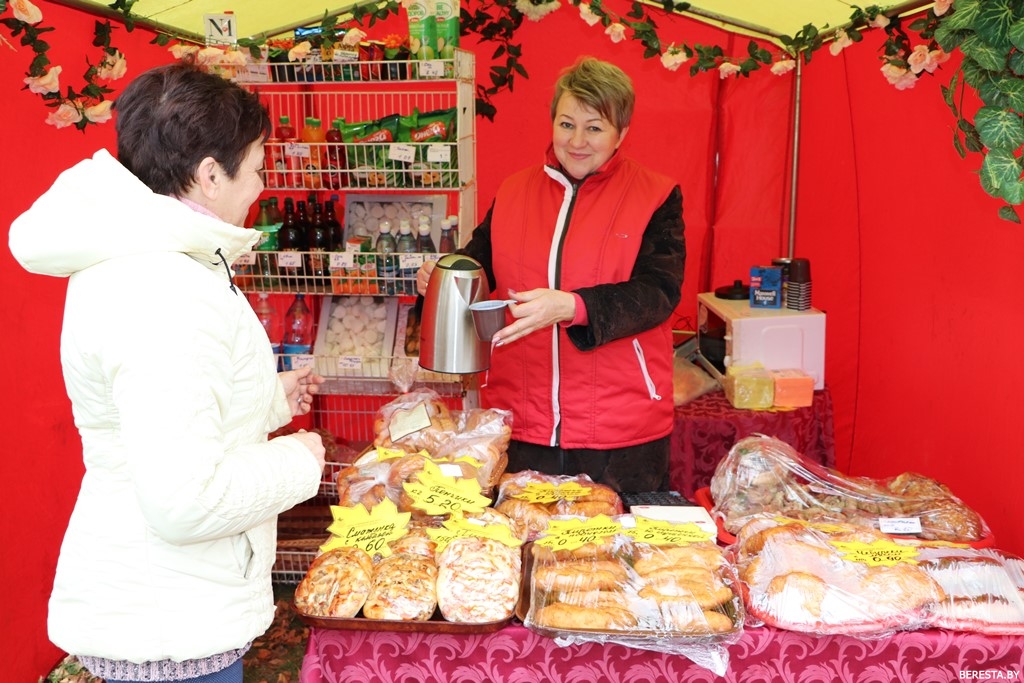 Кондитерские и выпечные изделия продавали Берестовицкий сельскохозяйственный лицей и общепит филиала облпотребобщества. К слову, вкусную продукцию можно было попробовать на месте с горячим чаем, который предлагали в общепитовской палатке.