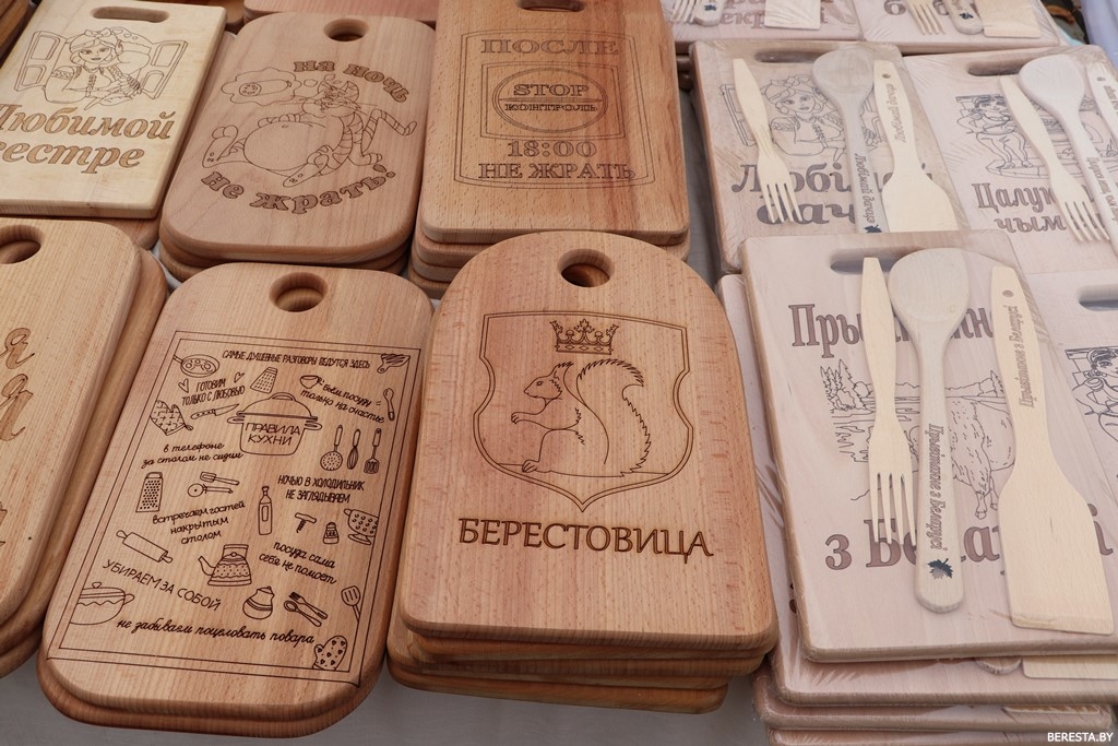 Внимание покупателей привлекали многочисленные изделия ручной работы из дерева, доставленные на ярмарку предпринимателем из Волковыска.
