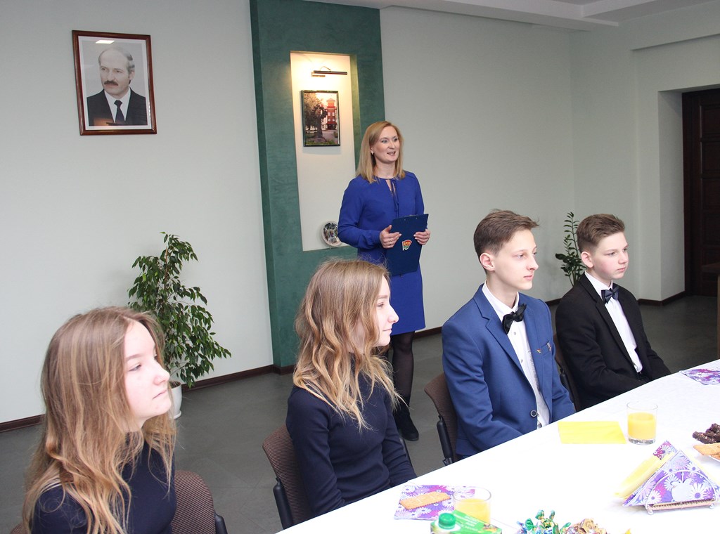 На прием были приглашены учащиеся Большеберестовицкой средней школы имени С.О. Притыцкого Олеся и Александра Пилецкие, Илья Козловский, Юрий Карпуть, Герман Матысик, Максим Демянчик, Андрей Грек. Представляя ребят, теплые слова в адрес каждого из них произнесла первый секретарь районного комитета ОО «БРСМ» Ирина Войтюк.