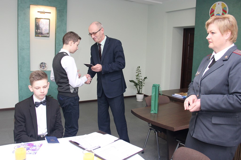 Антон Кулисевич вручил каждому учащемуся паспорт, книгу-подарок Президента страны «Я — гражданин Республики Беларусь» и памятные сувениры от РК ОО «БРСМ».