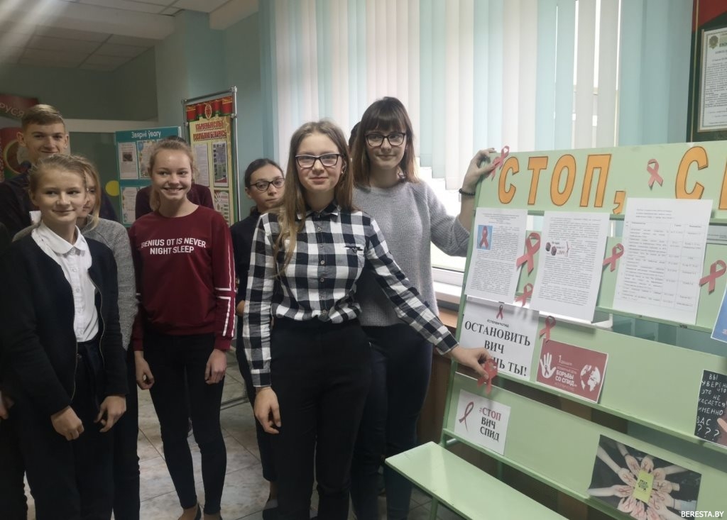 Волонтёры отряда «Данко» под руководством педагогов И.В. Лебедевич и Е.В.  Болбат провели акцию «Красная ленточка». Желающим активисты предложили прикрепить на стенд красную ленточку в знак памяти, сострадания, поддержи и надежды на будущее без СПИДа. А прикрепив её к верхней одежде на уровне сердца, ребята открыто заявили о своей солидарности с ВИЧ-инфицированными.