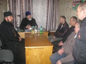 Во вторник, 27 ноября, в исправительном учреждении д.Знайдино состоялась встреча старшего тюремного священника Гродненской епархии протоиерея Виктора Колосовского и настоятеля прихода храма Покрова Пресвятой Богородицы протоиерея Сергия Гмира с администрацией учреждения и осужденными. Были затронуты вопросы быта и условий жизни осужденных. Гости ответили на вопросы. Встреча прошла в теплой, дружественной обстановке.