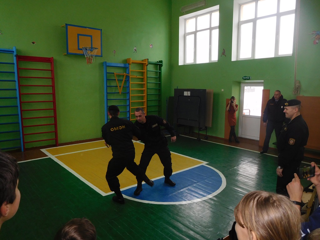 Учащиеся смогли задать интересующие их вопросы, а их было не мало: от будней сотрудников ОМОН до приемов самообороны. В дополнении бойцы ОМОН продемонстрировали приемы самообороны при нападении с холодным и огнестрельным оружием.