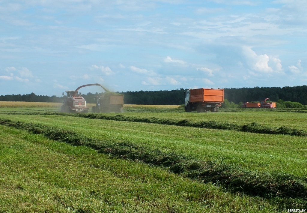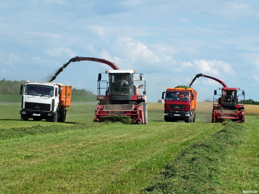 В этот день кормоуборчное звено работало на поле рядом с деревней Лесневичи, где на 32 гектарах посеяна люцерна. Подборку и измельчение зеленой массы осуществляли два кормоуборочных комбайна КВК, на которых работают опытные механизаторы Василий Сепеев и Николай Хилюта. На отвозке сенажной массы задействовано 10 единиц техники. Этого вполне достаточно, чтобы комбайны на поле не простаивали.