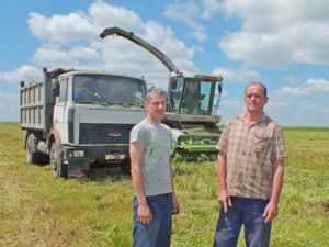 Старательно трудятся на заготовке кормов все члены кормозаготовительного звена. В понедельник они работали на поле рядом с деревней Жабры. Урожай люцерны здесь вырос хороший, на отвозке были задействованы три автомобиля и шесть тракторов. В таком составе это транспортное звено в основном и работало на протяжении всего периода заготовки кормов.