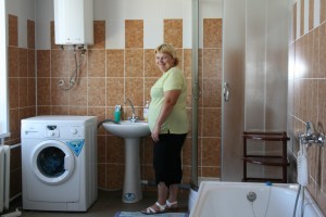 Правило «чистота – залог здоровья» соблюдается в отделении неукоснительно. Смотрю график банных дней: ежедневно душ или ванну принимают по три человека, а сделать это им помогают тот же социальный работник Зинаида Салманова и младшие медсестры Наталья Койпиш, Жанна Лашевич, Наталья Козинец и Елена Стефановская. Кстати, три первые работницы раньше трудились санитарками в больнице и отлично знают, как ухаживать за такими людьми. Всю нательную одежду завхоз Мария Масловская отправляет, не откладывая, в стиральную машину. Старшая медсестра Наталья Коноплицкая хоть и работает на полставки, но забот у нее хватает. Каждое утро она обходит палаты, интересуется здоровьем жильцов, измеряет им давление, раздает назначенные врачом таблетки. И вечером тоже приходит.